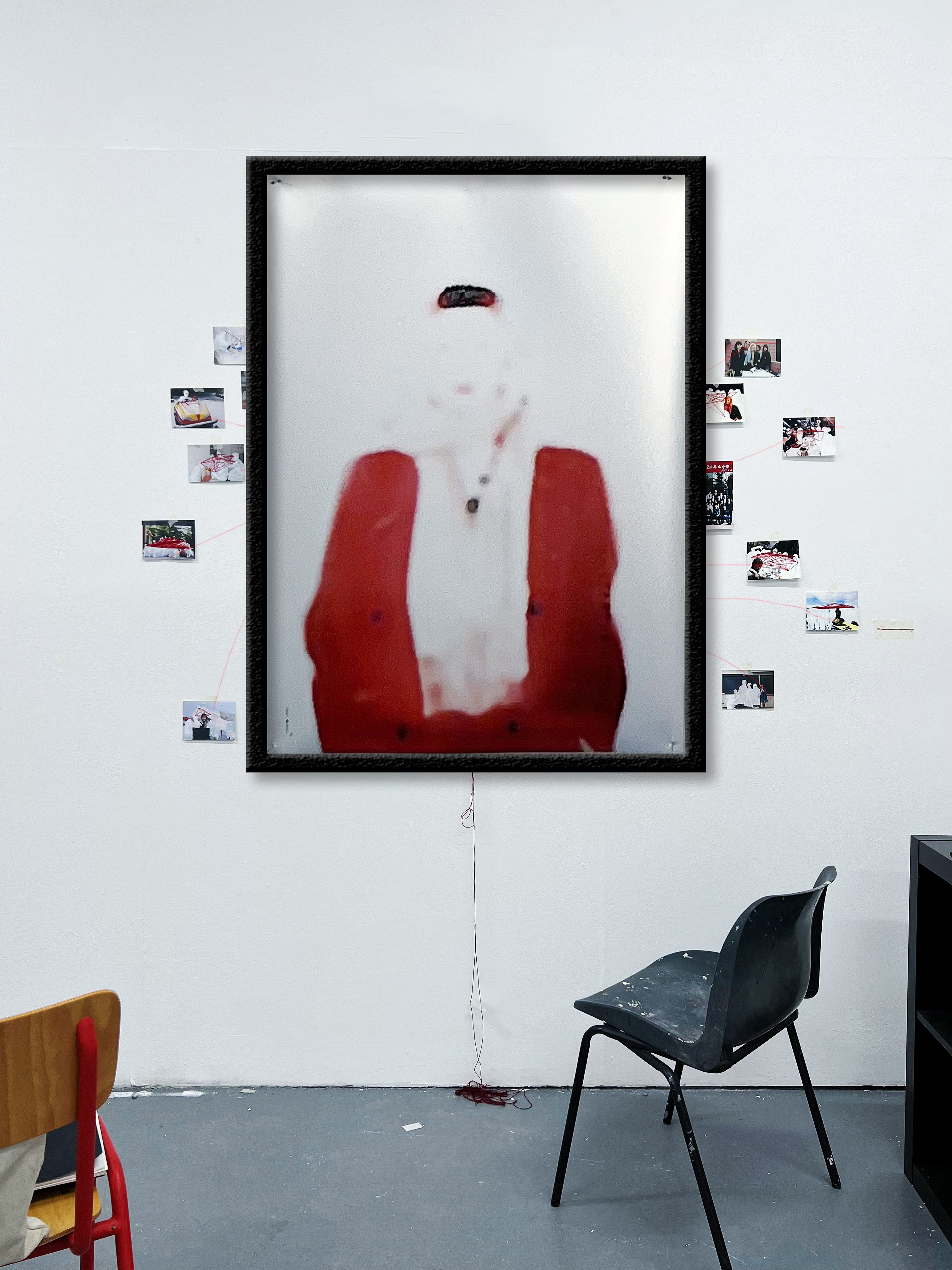 By realizing both death and dreams contain the same process of forgetting, that people forget faces faster than forgetting stories and emotional connections. Appearance and disappearance then become the key points of this project’s contents. Trying out different materials and photographic textures is to revert the blurry feelings of death and dreams, while using digital over-exposure edition and other physical techniques such as sticking red lines are experimental process to display process of forgetting and connecting.